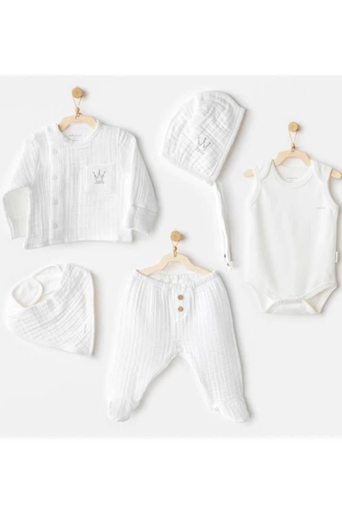 Andywawa Erkek Bebek Hastane Çıkışı Seti 5 Parça Muslin