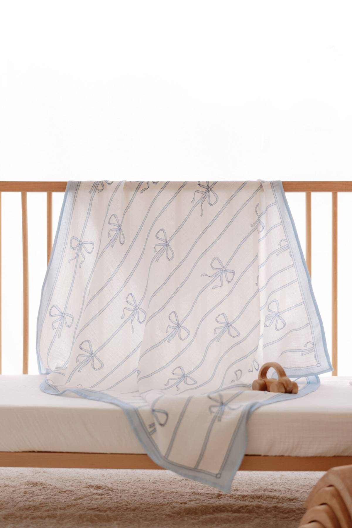 Atelıer Babbi Çift Katlı Müslin Bebek Örtüsü Mavi Kurdele