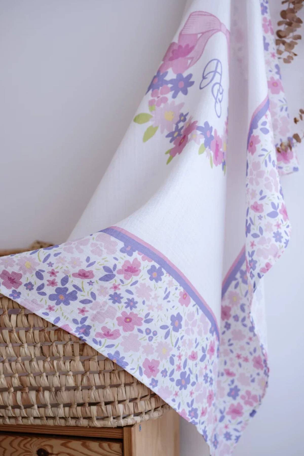 Atelıer Babbi Çift Katlı Müslin Bebek Örtüsü Pembe Çiçek Desenli