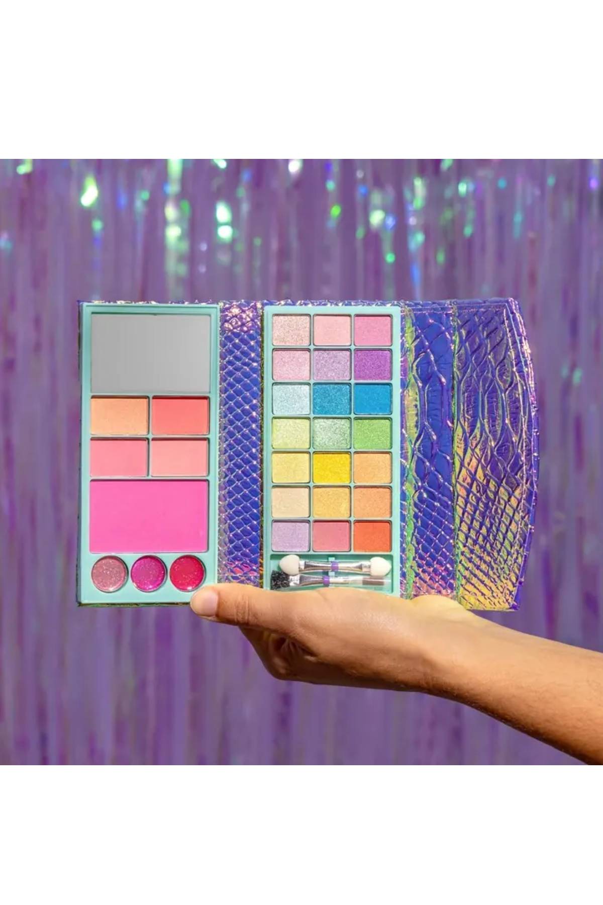 Denizkızı kuyruğunu simüle eden bu güzel holografik çanta, oyun seanslarınız sırasında en muhteşem makyajı elde etmeniz için gereken herşeye sahip.