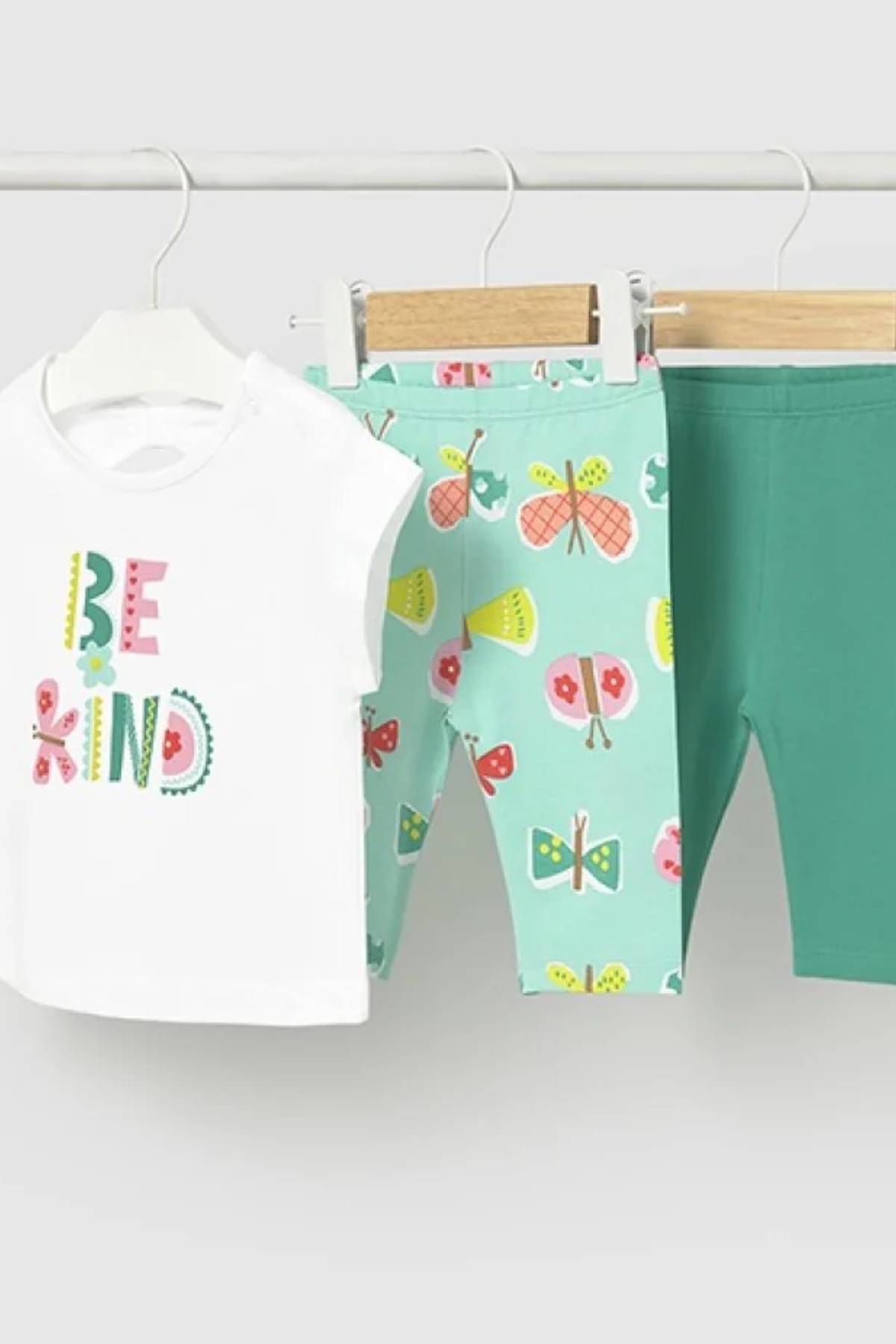 Yaz kombinlerini tek adımda tamamlayan bu 3’lü set, şıklık ve rahatlığı bir araya getirir. Bluz ve tayt tasarımı, miniklerin gün boyu özgürce hareket etmesine olanak tanır. %100 pamuk kumaşı sayesinde hafif, nefes alabilir ve cilt dostu bir kullanım sunar. Uyumlu parçalarıyla günlük olarak tercih edilebilecek pratik ve zarif bir seçenektir.