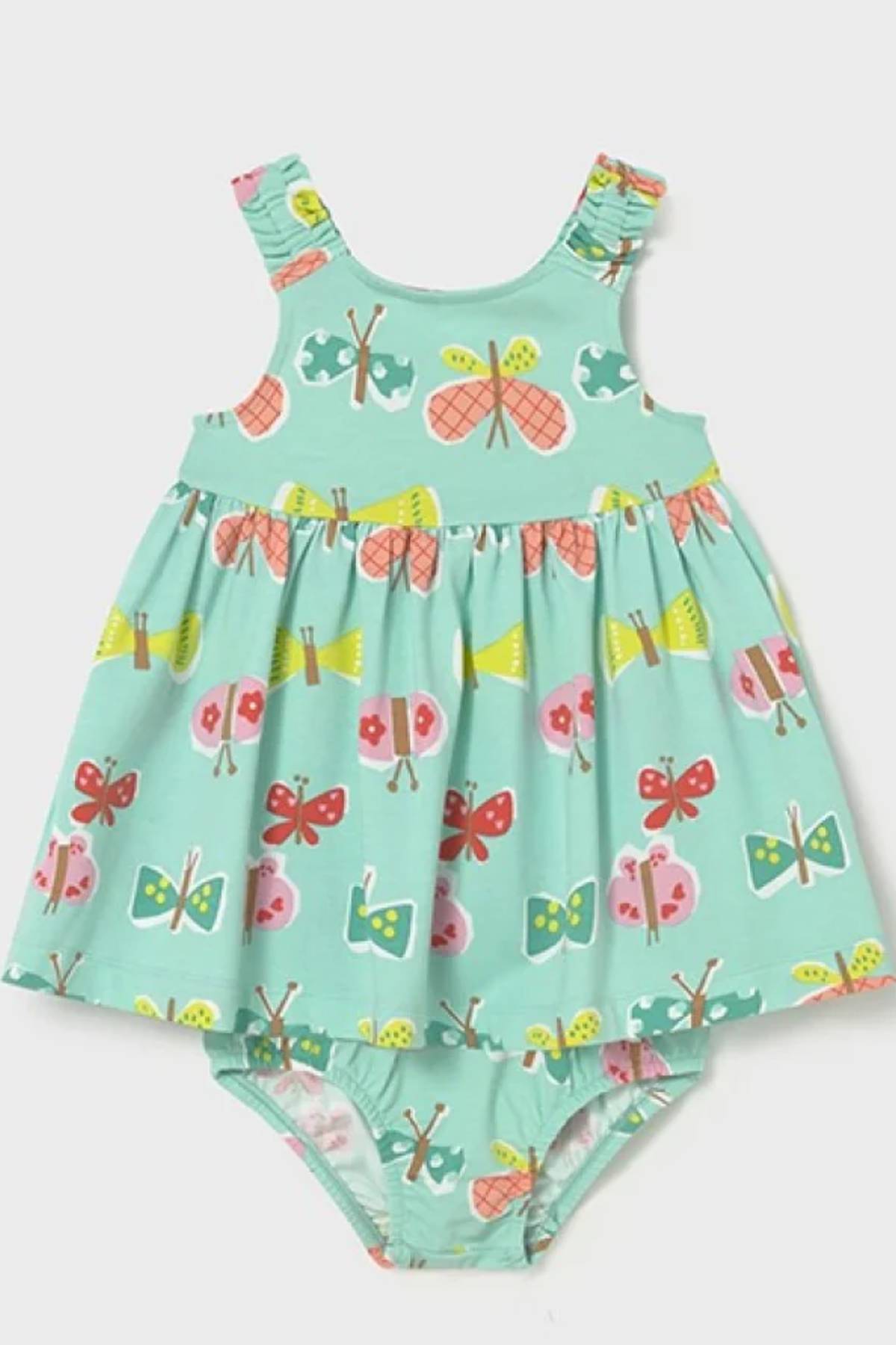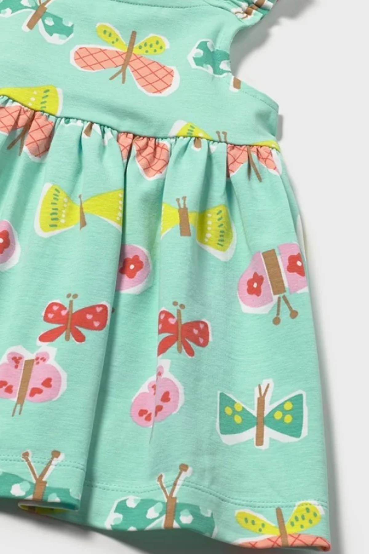 Sıcak yaz günlerinde miniklerin rahat ve serin kalmasını sağlayan ideal bir parçadır. Hafif yapısı, yaz boyunca miniklerin hareket özgürlüğünü kısıtlamadan rahat bir kullanım imkânı sağlar. Canlı ve sevimli tasarım detayları, elbiseye neşeli ve enerjik bir görünüm kazandırır.