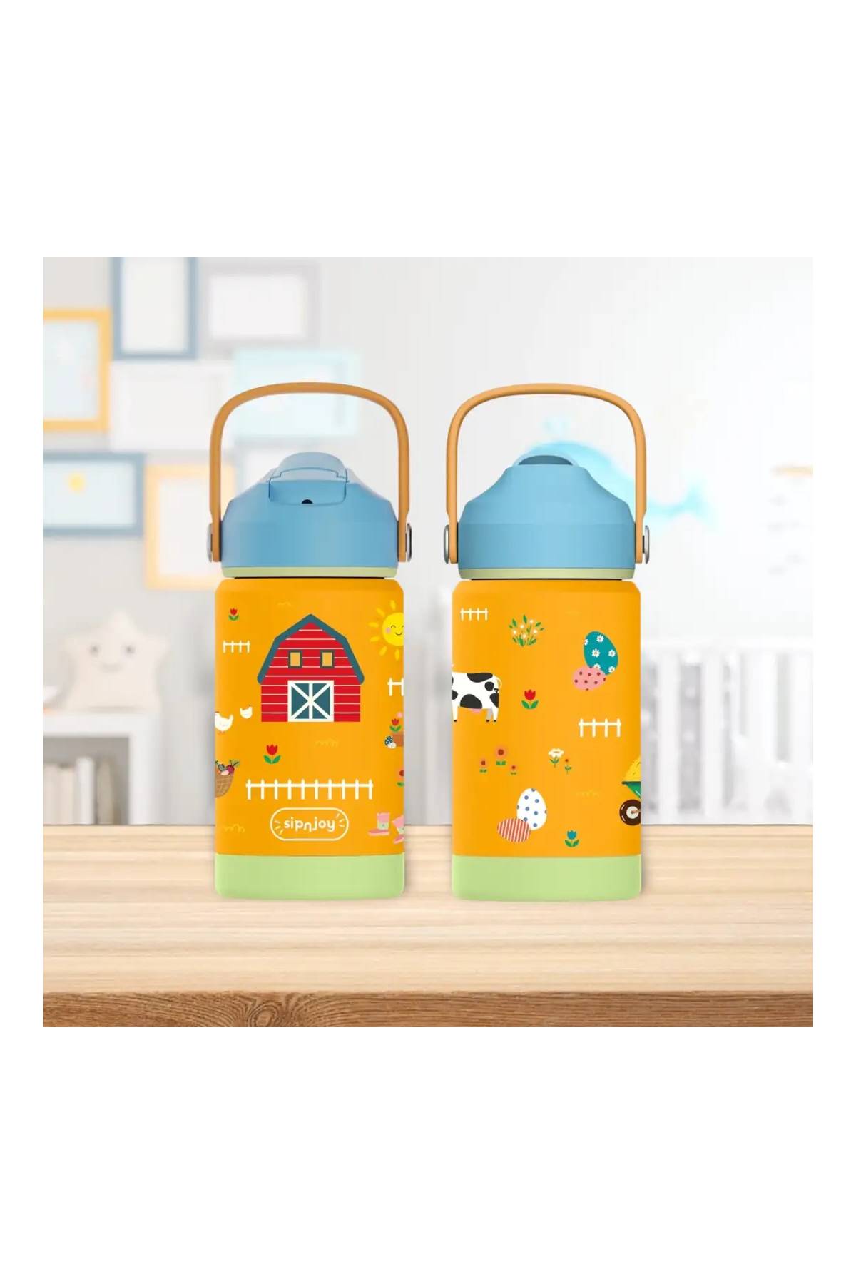 Çocuklar için özel olarak tasarlanan bu çift katmanlı vakumlu paslanmaz çelik şişe, içecekleri saatlerce ideal sıcaklıkta tutar. BPA içermeyen malzemeleri ve dayanıklı tasarımı sayesinde çocuklarınızın sağlığı ve güvenliği ön planda tutulmuştur.