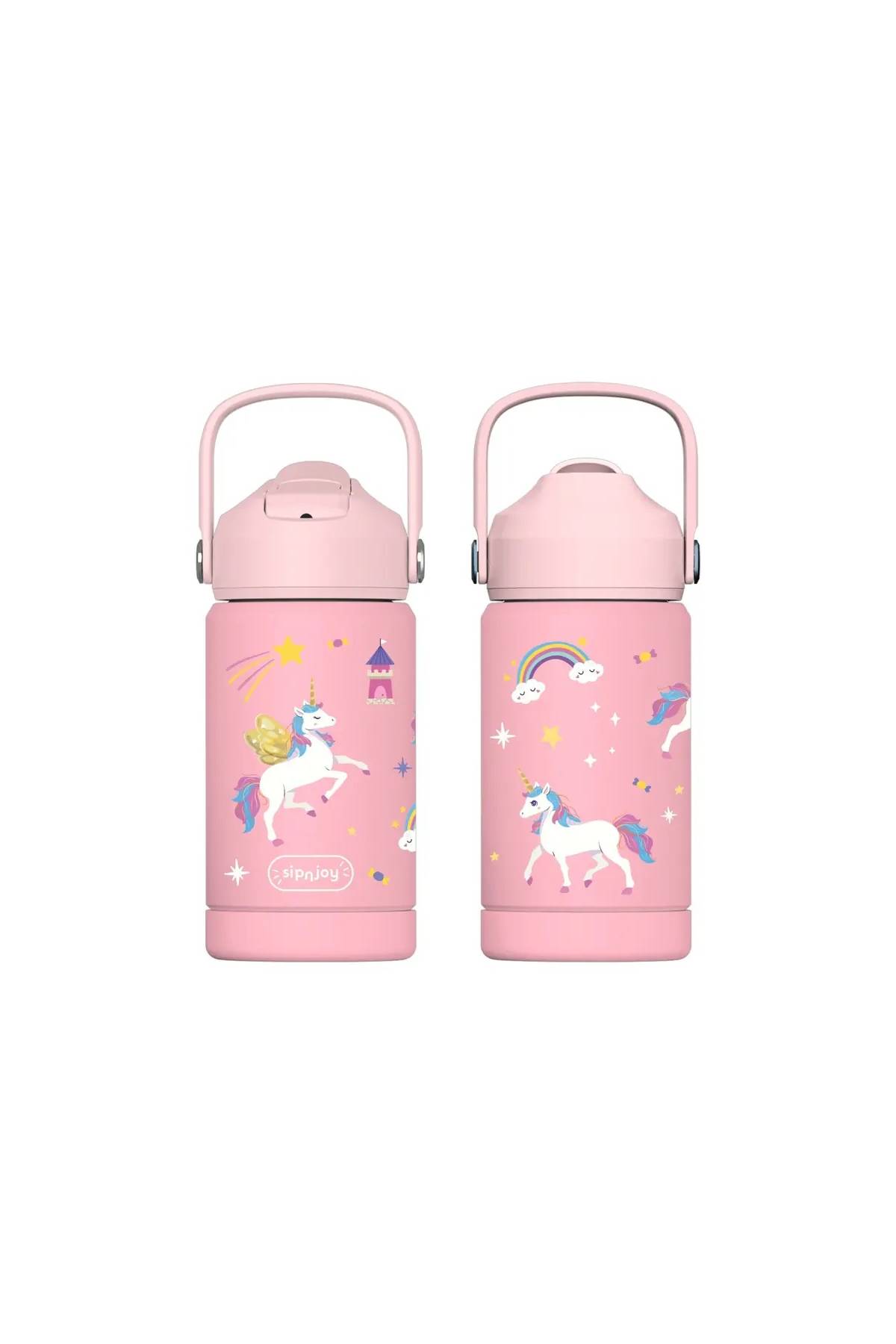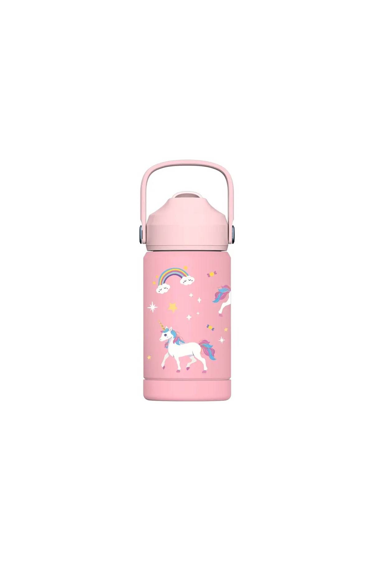 Çocuklar için özel olarak tasarlanan bu çift katmanlı vakumlu paslanmaz çelik şişe, içecekleri saatlerce ideal sıcaklıkta tutar. BPA içermeyen malzemeleri ve dayanıklı tasarımı sayesinde çocuklarınızın sağlığı ve güvenliği ön planda tutulmuştur.
